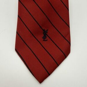 Yves Saint Laurent YSL Silk Tie Red Black Stripe Logo Vintage Designer Necktie