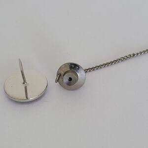 Yves Saint Laurent YSL Tie Necktie Pin Silver Gold Tone Logo Round Vintage