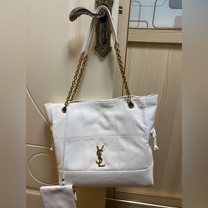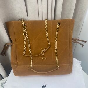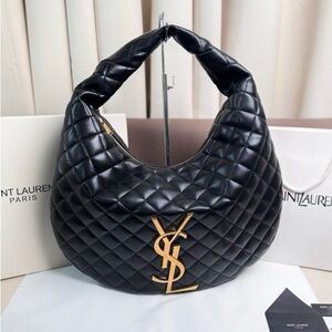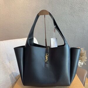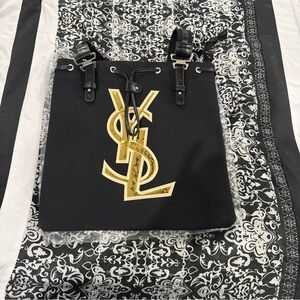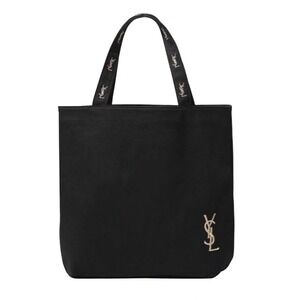 Yves Saint Laurent YSL Tote Bag Black Gold Embroidery Logo New