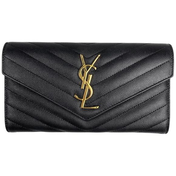 Yves Saint Laurent YVES Saint Laurent Logo Fold Long Wallet Billfold Coin Purse