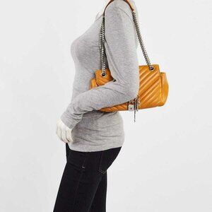 Handles: Double chain straps with leather shoulder pads