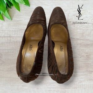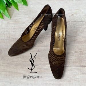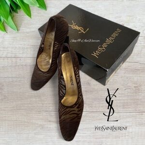 Yves Saint Laurent vintage brown mesh zebra high heeled pumps are perfect with a pencil skirt and silk blouse for an elegant look. GUC. See all photos for details/wear. Comes in original YsL box/tissue.