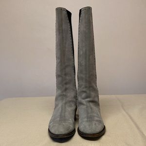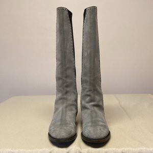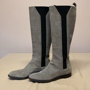 Classic Yves Saint Laurent, suede riding boots, excellent used condition, leather soles, at a fraction of the cost.Small blemish is seen in last picture.
