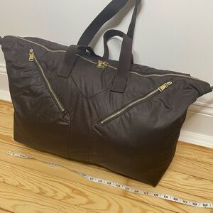 Yves Saint Laurent YSL Dark Brown Nylon Duffle Bag Hampton Boston Travel Tote