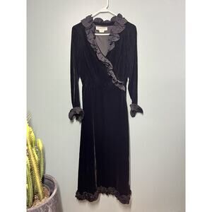 Yves Sait Laurent Rive Gauche Black Velvet Long Sleeve Cocktail Dress 70s Paris