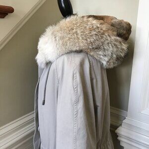 Yves Salomon YS Army Parka Coat Womens 42 XL Gray Fur Lined Waterproof Jacket