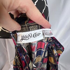 Yves St Clair Bold Maximal Square Print Mock Neck Long Sleeve Blouse Size 12