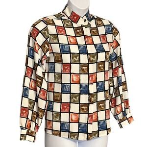 Step back into timeless style with this vintage 1980s button-up shirt, a chic piece that blends retro flair with classic sophistication.