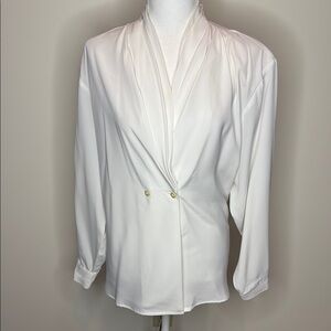 Yves St. Clair White Blouse with Shawl Collar and Draped Silhouette. Size 20