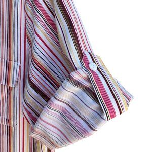 Yves St Clair Womens Pink Striped Short Sleeve Roll Tab Button-Up Stretch Shirt