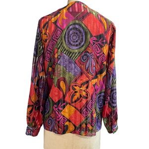 Yves St. Claire Women's Blouse Shirt Multicolor Abstract Stripe Long Sleeve 10