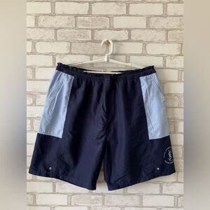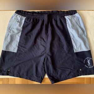 Yves St. Laurent Swim Shorts - Y2K Gym Shorts - Size 38 waist - Navy Light Blue