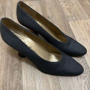Yves St. Laurent Vintage Black Fabric Pump Brown Glass Heels Size 6.5