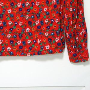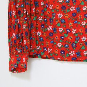 Yves St Laurent YSL Cotton Crepe (red) Calico Peasant Blouse