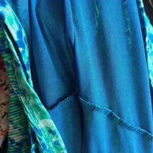 Yves Women's Sleeveless Tiered Tank Top - Blue & Green Abstract Print size M