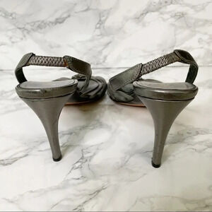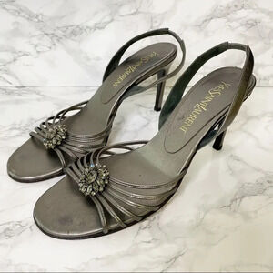 Yves Saint Laurent Grey Silver Leather Crystal Embellishment Heels Size 8