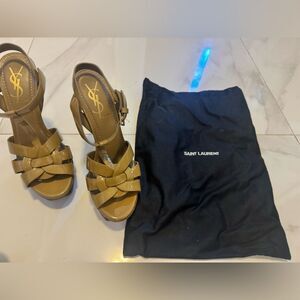In a fair condition. Chic Yves Saint Laurent heels. Elegant tan shade. Ideal for any event.