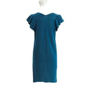 Yves Saint Laurent Printemps teal knit dress with butterfly sleeves, v-neck and overall stretch. Bust 38”, length 41” and waist 38”.