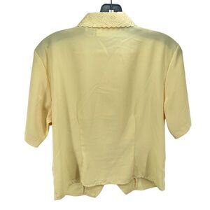 Yves St Clair vintage Button Up Blouse Floral Embroidered Short Sleeve Yellow 8