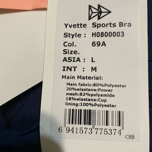 🆕 Yvette Sports Bra with sewn in padding, Size MEDIUM (US 8), Color BLUE