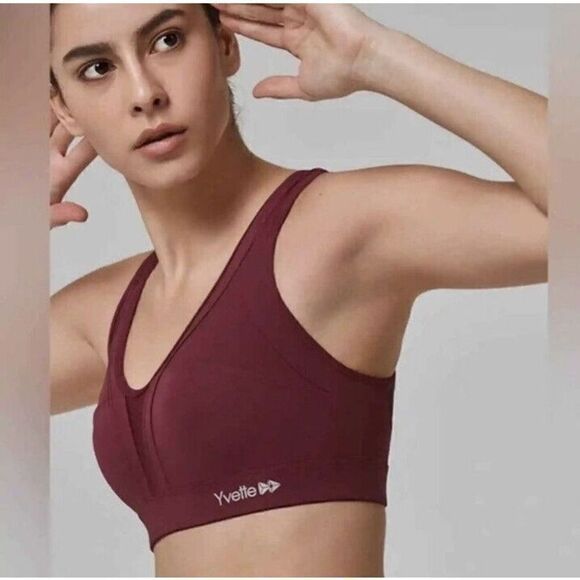 Yvette Women High Impact Sports Bras Criss Cross Back Sexy Running Bra Sz 8 D-F