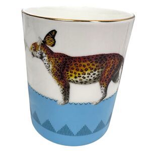 Yvonne Ellen Leopard Parrots Coffee Mugs White Animal Print Porcelain Lot of 2