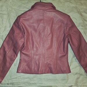 Chic pink leather jacket by Yvonne Marie with an elegant design with a tailored fit.