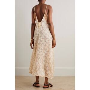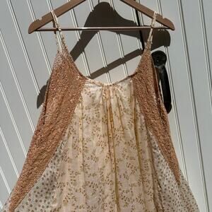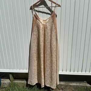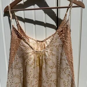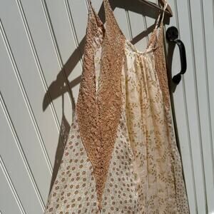 Yvonne S. makes the most amazing, lightweight, airy, and dreamy separates that make you feel like you are wearing a cloud. This gorgeous trapeze dress is the perfect glam beach coverup dress, and is also perfect for a summer day or night. Beautiful peach, brown, green and pink ditzy floral dress features adjustable straps with goldtone hardware, lace v-panels at the sides, and hidden on-seam pockets. Each dress is made with unique prints created through hand-applied screen-printing techniques using natural dyes. No two dresses are alike. Dyes used are non-toxic. Size Medium. Brand new without tags (never worn; too large on me sadly :-( ). $580 retail. Measurements in the pic.