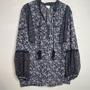 Women's Size 22W Black Bohemian Pattern blouse. Sheer top with Tassels. EUC.