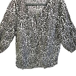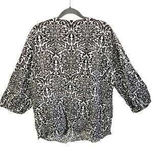 Yvos Women's Size XL Flowy Peasant Blouse Cream Brown Baroque Linen Blend Boho