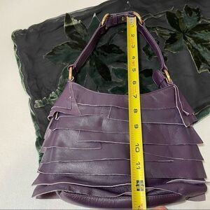 Obviously inspired by the 90’s YSL, this little bag is quite a statement piece. All leather, violet cotton lining with pockets. Very cool bag! Great shape.