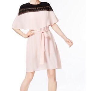 Yyigal Pink Belted Lace Pink Cape Dress.