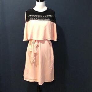YYIGAL pink belted lace cape dress. Keyhole back detail. Small mark as pictured should come out with stain remover.
