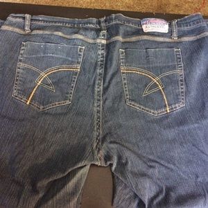 These capris are so comfortable and are loose fitting at the ankle. The size tag has been removed but it would fit 26/28 comfortably! You also have the option of rolling the bottoms up or for a longer length leaving them unrolled