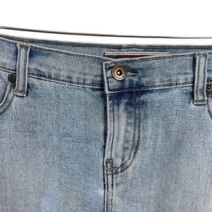 Z. Cavaricci Y2K Denim Mini Skirt Size 7 Light Wash Frayed Hem Stretch Blue