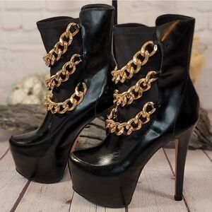 Z Gold Black ZiGi Girl Chained Platform Stiletto Sock Boots