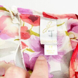 Z STUDIO Watercolor Floral Shift Dress SZ 12 Ruffled Semi-Sheer Pretty Feminine