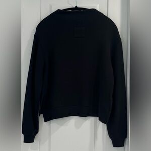 Stylish black long sleeve sweatshirt with funnel neckline. See fabric contents and care instructions in photos. Perfect for casual wear.