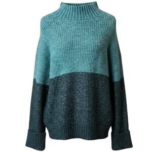 Z SUPPLY Poppy Ribbed Sweater Deep Sea Green Colorblock Pullover Women’s Small