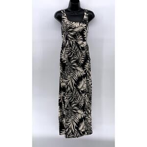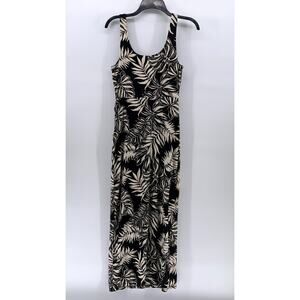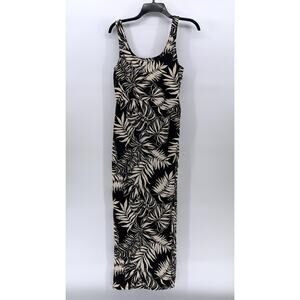 Z SUPPLY Women's Black-Beige Palm Print Melbourne Sandy Bay Midi Tank Dress SZ S