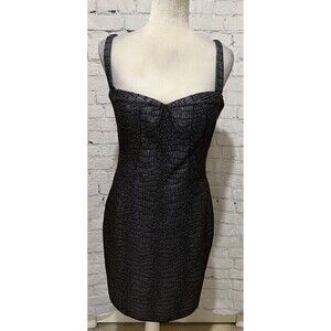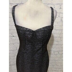 Z Spoke Zac Posen Crocodile Effect Texture Midnight Black Brocade Dress Size 10