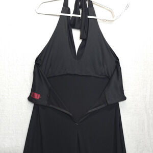 Z Studio Halter Dress Babydoll Embellished Open Back Deep V Neck Women 16 Black