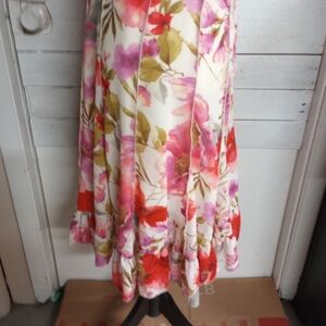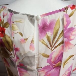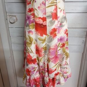 Z Studio Sleeveless, Women's 8P Sheer Slip Lined Floral A Line Spring Dress, Flowy, partially zippered back, Keyhole opening in back. Approximate measurements are laying flat armpit to armpit 19", length from shoulder to hem 40" and waist 16". The sash belt is missing. Condition is pre owned, used, good condition.
