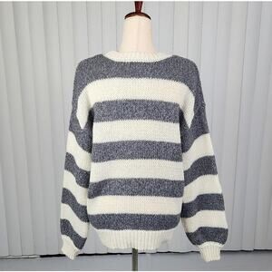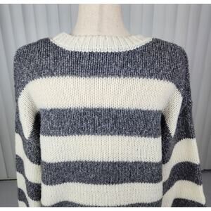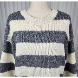 Z Supply Anders Stripe Oversized Sweater Tight Knit Cream Gray Size Medium