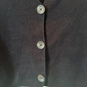 Chic black cropped cardigan with button-up front. Ideal for layering.