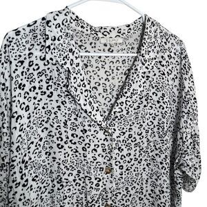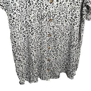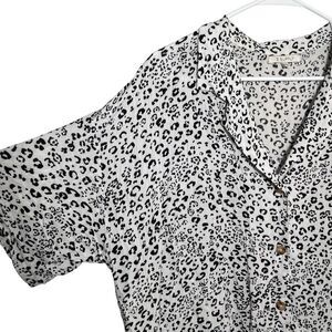 Z Supply Blouse Women's Large Cheetah Button Up Collared Short Sleeve Shirt Top