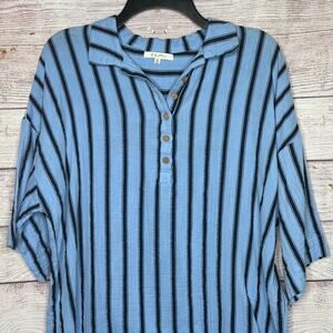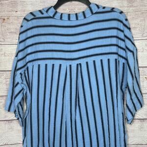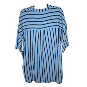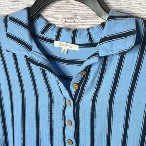 Z Supply Blue Striped Button Down Cotton Short Sleeve Mini Dress Size Medium