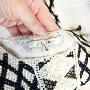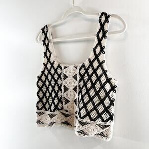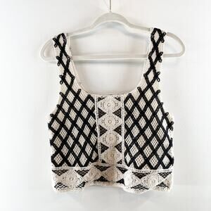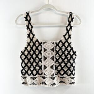 Z Supply Calle Square Neck Crochet Cropped Tank Top Tan Black Small