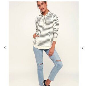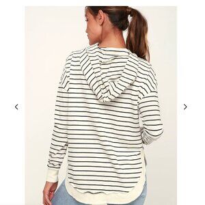 Z Supply Dakota Ivory Striped Pull-Over Hoodie Size Small Preppy Casual Comfy