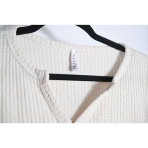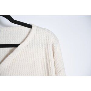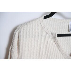 Z Supply Ivory Long Sleeve V-neck Oversized Waffle Knit Shirt Women Sz XS